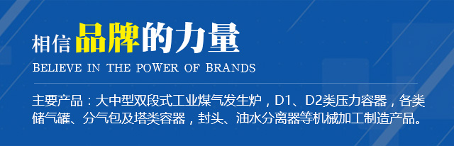 公司主要產品:大中型雙段式工業煤氣發生爐,D1、D2類壓力容器,各類儲氣罐、分氣包及塔類容器,封頭、油水分離器等機械加工制造產品。